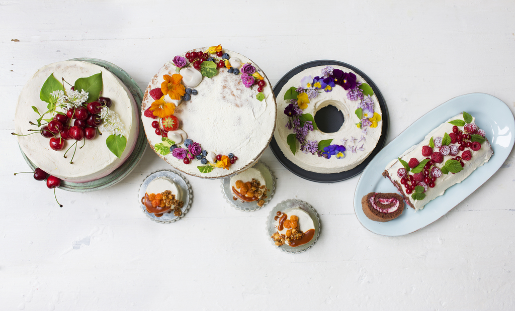 Gruppebilde av finalekakene i bløtkakekonkurransen 2017